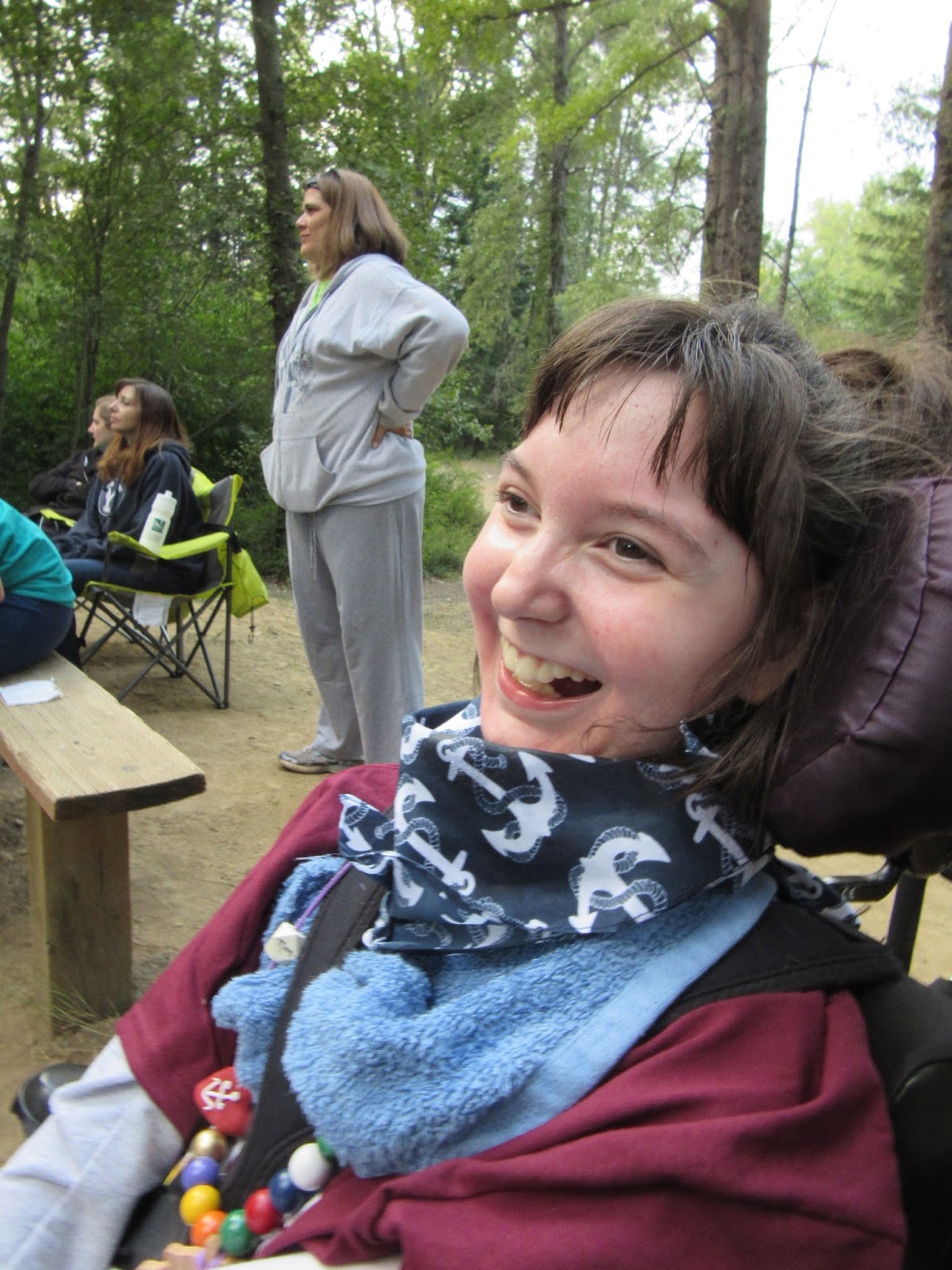 Miriam is twelve years old and currently in the seventh grade. With her speech device, she is slowly growing a more complex vocabulary.